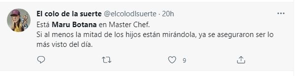 Por su parte, otros hicieron alusión a su extensa familia. "Está Maru Botana en Masterchef. Si al menos la mitad de los hijos están mirándola, ya se aseguraron ser lo más visto del día".