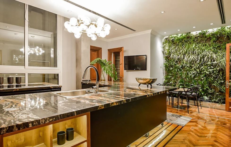 ¿Cuánto hay que invertir para comprarla? La abultada cifra de USD 1.350.000. Pero el desembolso vale el esfuerzo, porque la propiedad cuenta con amenities únicos, como un hogar suspendido con cuarcita Roma imperial en un segundo living que se suma al que aparece en la entrada.
