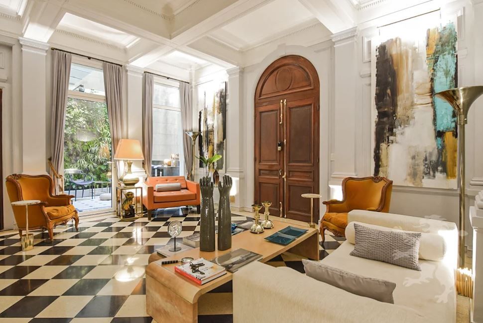 Además de su enorme balcón sobre la calle Guido, la casa tiene dormitorios en suite y su cocina es enorme y está repleta de detalles realizados con materiales importados. ¡Un palacio!