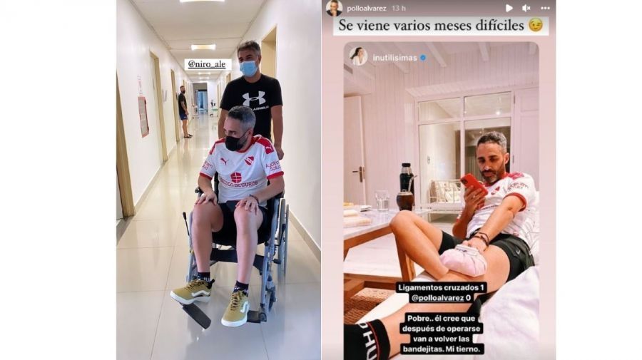 Poco después, el Pollo Álvarez reveló: "Me jodí los ligamentos cruzados y la re...". A su vez, el presentador subió un video en el que se lo ve llegando al sanatorio donde tuvo que ser asistido con silla de ruedas.