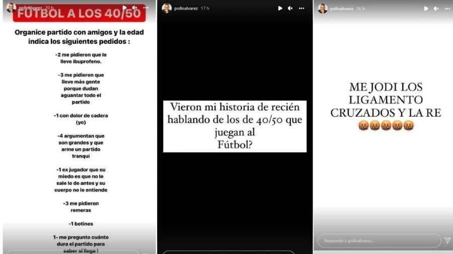 El Pollo Álvarez se accidentó durante un partido de fútbol este fin de semana y deberá ser operado. El conductor compartió un video y algunos posteos para explicar su situación.