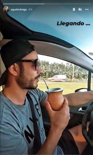 Cuando se conocía la llegada de Wanda al país, Agustín Longueira subió una historia en la que se lo ve manejando en la ruta, con un mate en la mano y sonando de fondo “Hoy”, la canción de Gloria Estefan.