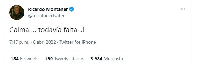 "Calma… ¡Todavía falta..!", escribió el músico en su cuenta de Twitter, generando confusión entre sus seguidores. Luego, agregó: "Hoy en casa no se duerme …", dando a entender que el nacimiento es inminente.