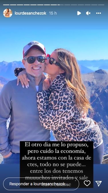 "El otro día me lo propuso pero cuido la economía, ahora estamos con la casa de Corrientes y todo no se puede... Entre los dos tenemos muchos invitados y sale caro casarse", expresó Lourdes junto a una foto dándole un beso en la mejilla a Chato.