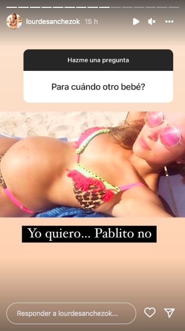 Otra de las consultas fueron referidas a la posibilidad de agrandar la familia. La pareja ya tiene un hijo, pero la llegada de un segundo parece complicada al menos en el corto plazo. "¿Para cuándo otro bebé?", le consultó uno de sus seguidores. "Yo quiero... Pablito no", respondió.