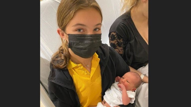 El pequeño es el primer hijo de Mica y el cuarto de Cubero, quien ya tiene tres hijas de su anterior matrimonio con Nicole Neumann. Sus tres hermanas lo conocieron ayer por la tarde ya que durante el fin de semana estuvieron con su mamá. Allegra usó sus redes para compartir las fotos del encuentro con el bebé junto con la inscripción "Te amo hermanito".