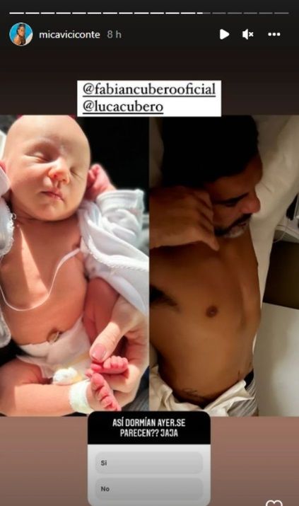 “Así dormían ayer, ¿se parecen?”, preguntó Mica a sus seguidores en una historia de Instagram y arrobando las cuentas de su pareja y de su hijo.