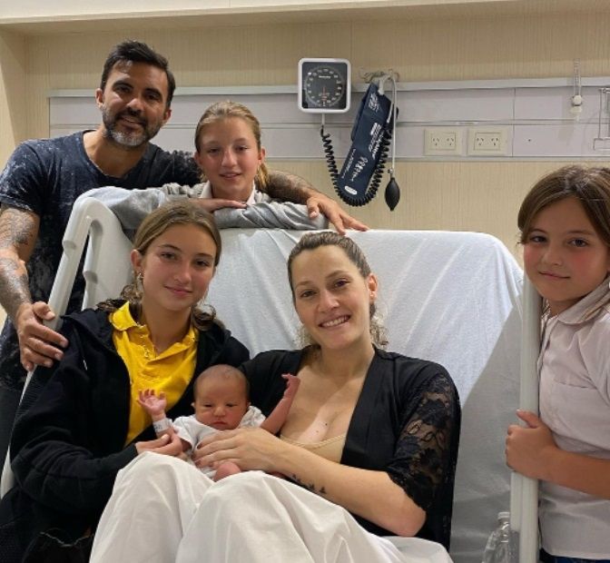 En la primera foto se podía ver a Fabián, Mica, Luca y las chicas, todos juntos en la clínica. En las siguientes, a cada una de las hijas de Cubero y Nicole cargando en brazos a Luca.