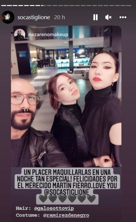 Hermosa e imponente con su conjunto negro del diseñador Pablo Ramírez, la hija de Moria Casán compartió su galardón con sus compañeras de terna y agradeció, emocionada: "Y quiero compartirlo con mi mamá, con mi tribu: que son mi familia, mis amigos. Con mi hija Helena que me acompañó y con mi hijo Dante y con todos ustedes. Muchas gracias, buenas noches”.