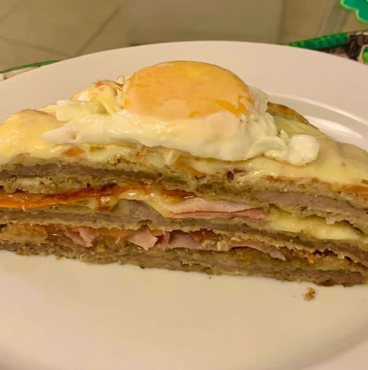 “Es una milanesa grande que ponés: arriba unas cebollitas, morrones, ajitos al horno; después ponés otra capa de milanesa con mucho queso, unas rodajas de tomates; otra milenesa, arriba pones aceitunas, jamón; otra milanesa... “, enumeró.