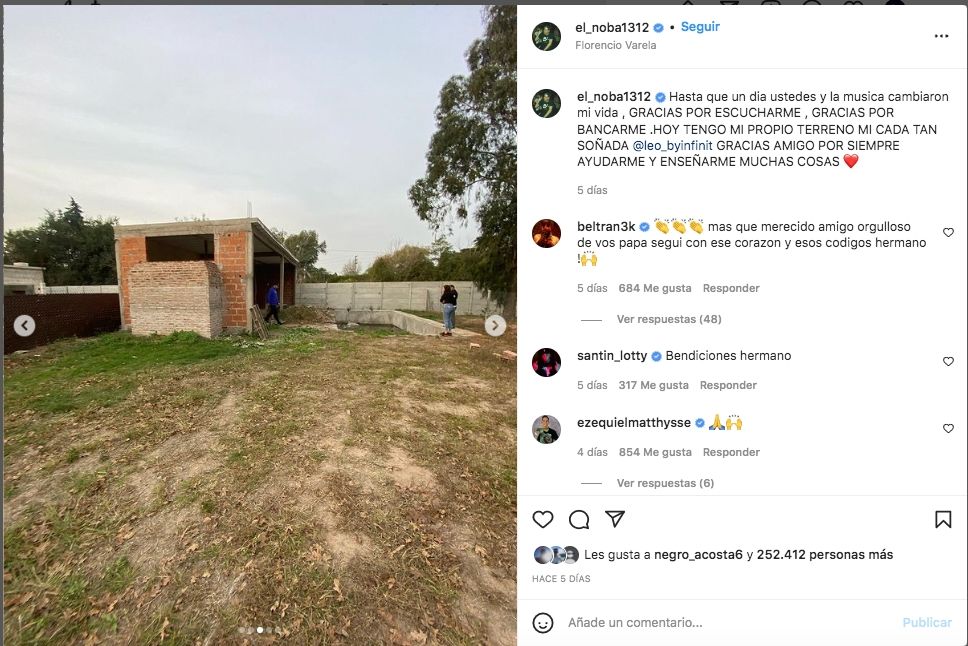 Dentro de este panorama, adquirió relevancia un posteo que realizó El Noba el mismo martes, ese día fatídico. Se trata de un video y de varias fotos de un paso enorme que pudo concretar en su vida privada y que se relaciona con ese anhelo de la casa propia.