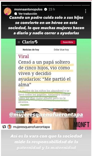 Lo cierto es que Mónica armó un posteo que prendió el fuego de la controversia con una serie de definiciones taxativas respecto a este hombre cordobés. “Cuando un padre cuida solo a sus hijos se convierte en un héroe en esta sociedad”, arrancó en su publicación.