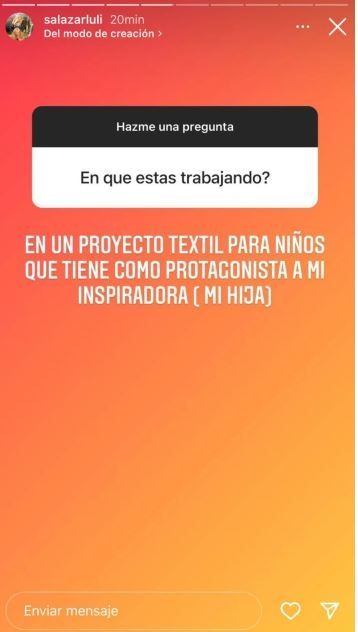 "¿En qué estás trabajando?", quisieron saber, y ella respondió: "En un proyecto textil para niños que tiene como protagonista a mi inspiradora (mi hija)". ¿De qué se tratará este emprendimiento? ¿Sacará una marca propia con su hija como modelo?