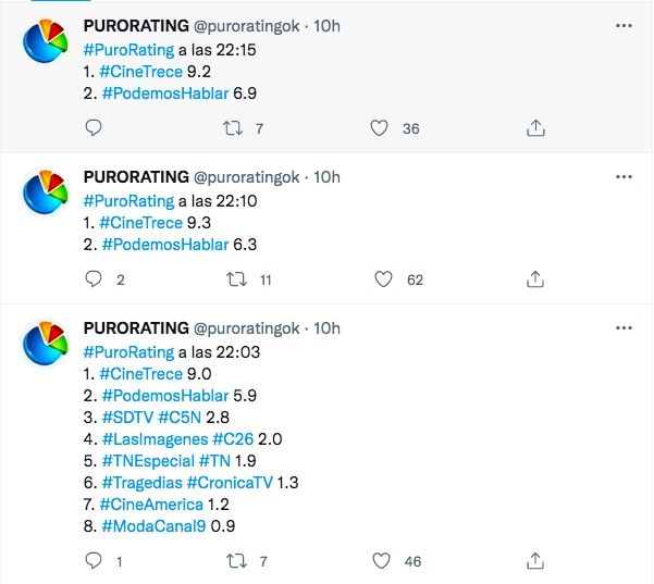 Cabe señalar que el primer programa de la temporada 2022, Andy alcanzó un techo de 11 puntos, mientras que sus principales rivales de El Trece tuvieron que conformarse con mediciones que rondaron entre los 5 y 6 puntos.
