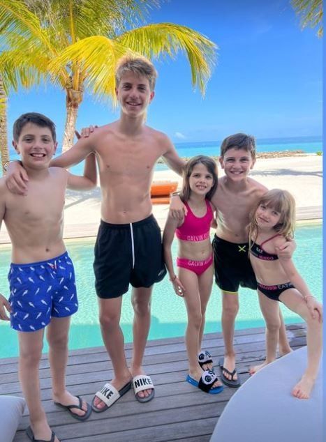 “La más afortunada. No existe nada más importante para mi que ellos, vacaciones en familia”, expresó la rubia en su cuenta de Instagram, al mostrar fotos de Valentino, Benedicto, Constantino, Francesca e Isabella, al partir del Aeropuerto Charles de Gaulle con destino a Maldivas.