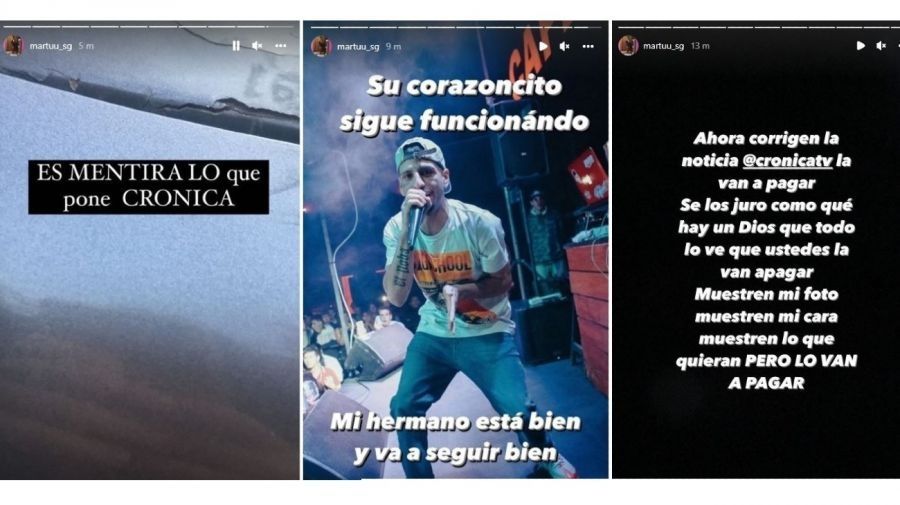 Poco después, la joven remarcó: "Es mentira lo que pone Crónica. Su corazoncito sigue funcionando. Ahora corrigen la noticia Crónica. La van a pagar. Se los juro como que hay un Dios que todo lo ve, la van a pagar. Muestren mi foto, muestren mi casa, muestren lo que quieran, pero la van a pagar".