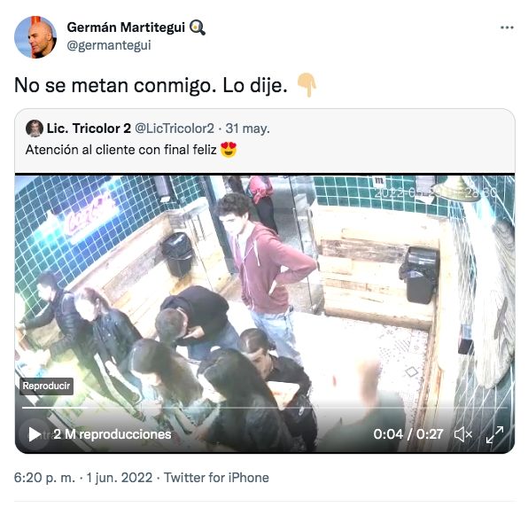 Pero, lo que parecía una situación más de inseguridad, terminó generando gran repercusión en las redes sociales por el parecido del "justiciero" con Germán Martitegui. Fue por ese motivo que su nombre se convirtió en tendencia. Fue tal la repercusión, que el propio jurado de MasterChef se hizo eco de lo sucedido y dejó un particular mensajes.