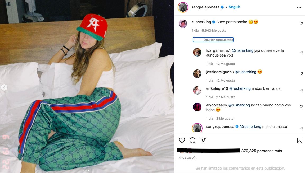 Luego, La China subió a su muro una imagen en la que mostró su look urbano. Al verla, su novio no tardó en elogiarla: “Buen pantaloncito”, le comentó en la publicación. Y ella respondió con complicidad: “Me lo copiaste”.