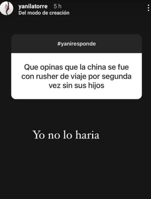 Tras las repercusiones de la noticia, Yanina Latorre opinó de forma categórica sobre el romántico viaje. La panelista de LAM respondió a través de su cuenta de Instagram a las preguntas que le hicieron sus seguidores.
