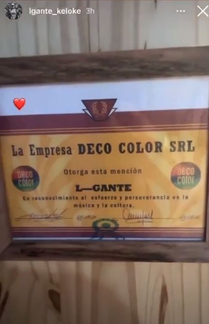 L-Gante recibió la semana pasada una distinción por su trayectoria y aporte a la música y la cultura del país de parte de la empresa Deco Color SRL. Pero la noticia generó indignación en Amalia Granata, quien se expresó al respecto.