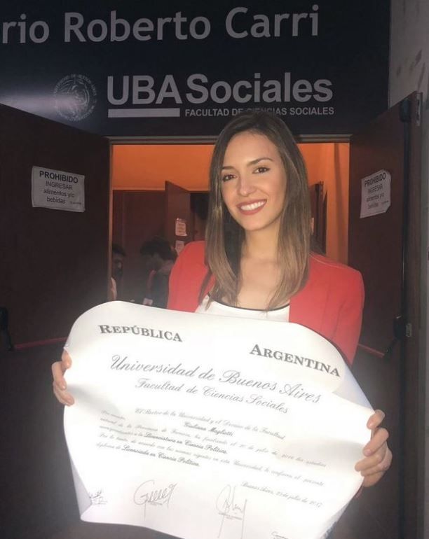 Actualmente, Giuliana, de 29 años, se dedica a la comunicación y al marketing, y tiene muchas credenciales académicas en su haber: además de su título en Ciencias Políticas, que obtuvo en la Universidad de Buenos Aires, hizo un posgrado en comunicación y un máster en relaciones internacionales.