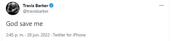"Dios me salve", escribió Barker en su cuenta de Twitter poco después de su internación. Por su parte, su hija Alabama pidió en su cuenta de Instagram a los fans que "envíen sus oraciones".