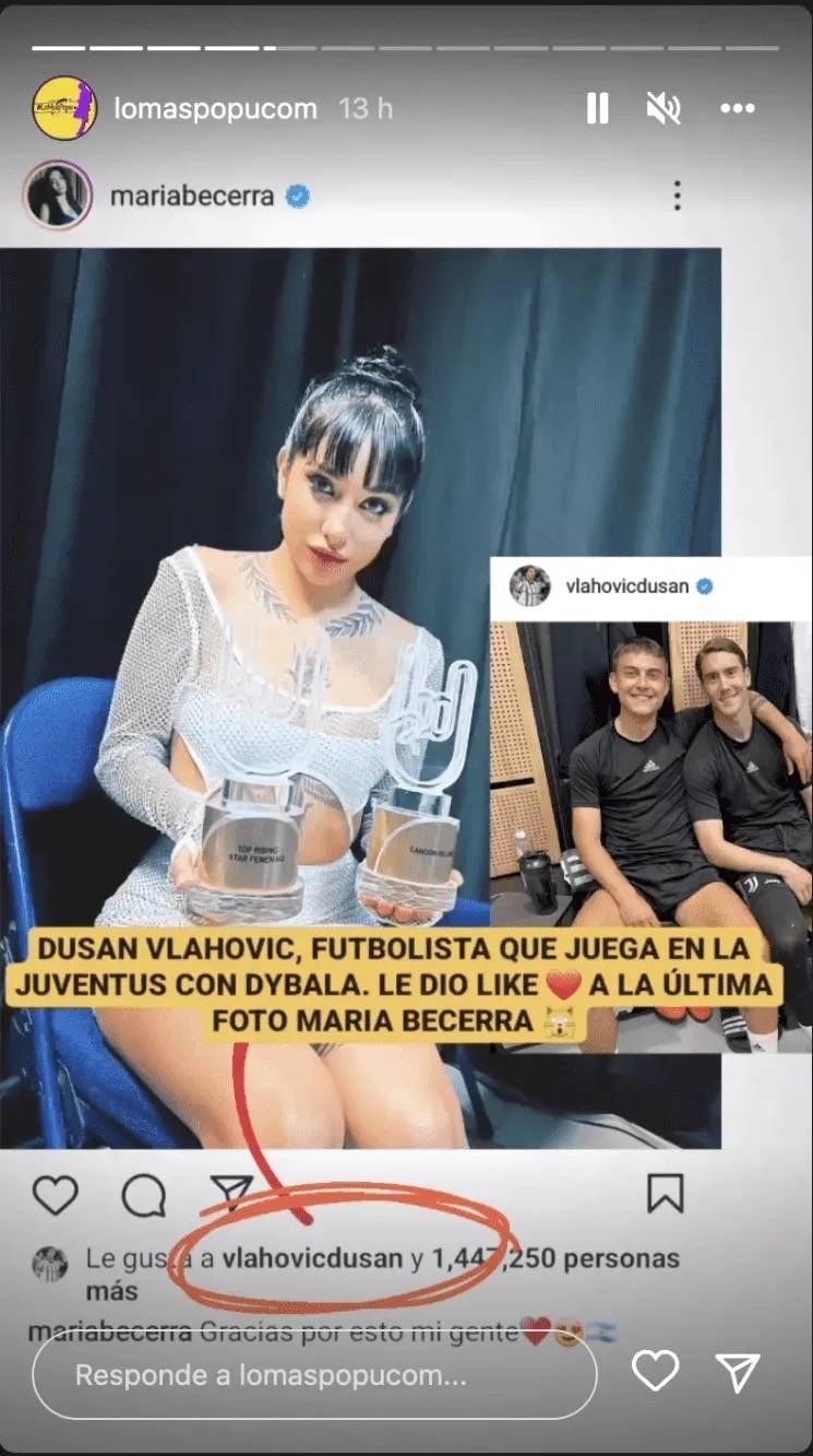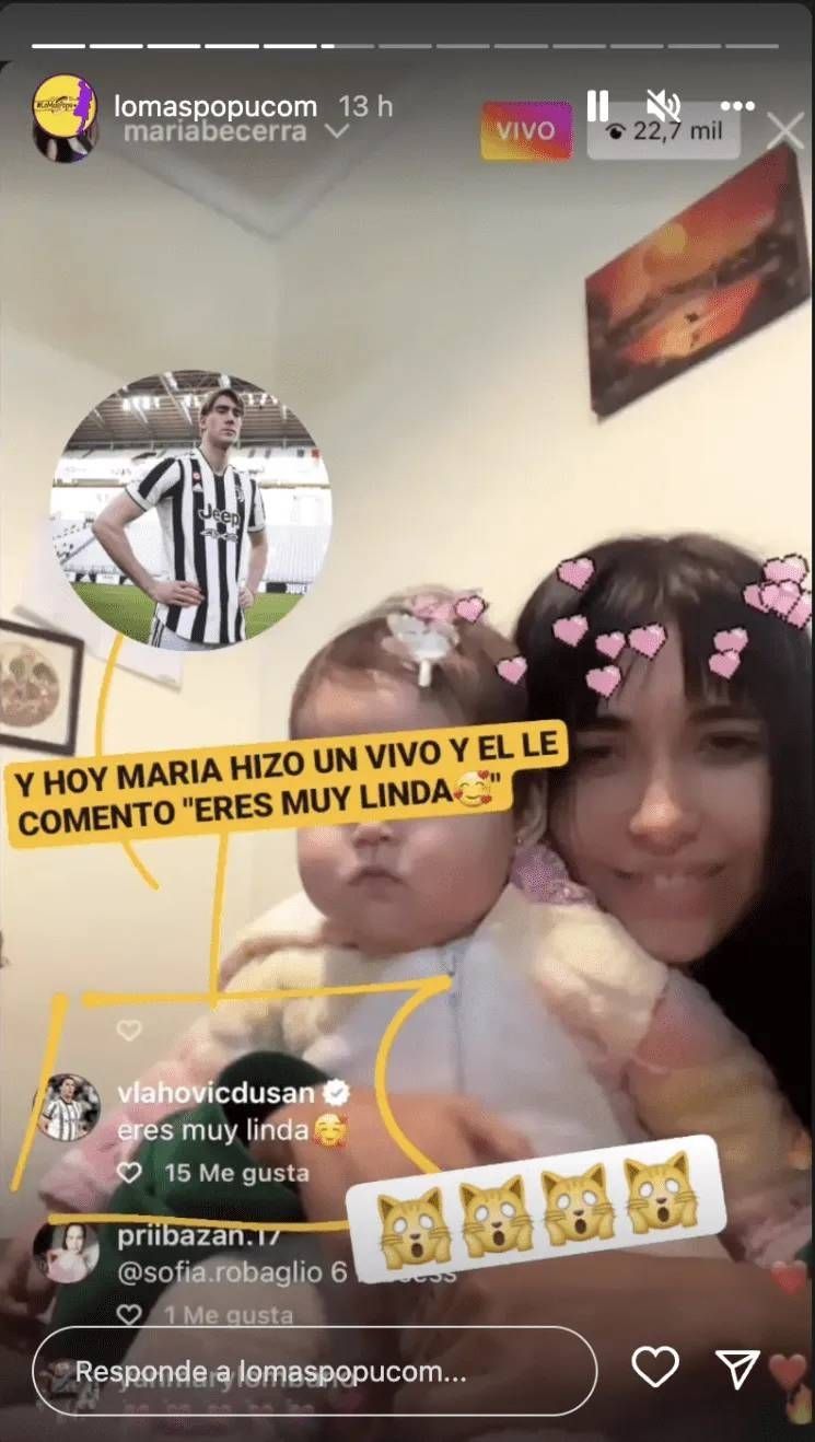 El muchacho en cuestión es Dušan Vlahovic, un jugador de origen serbio de 22 años que juega como delantero en la Juventus con Paulo Dybala. Hasta ahora, el joven empezó a seguirla en su cuenta de Instagram, donde le dejó corazones y hasta un comentario muy claro en un vivo. “Eres muy linda”, le dijo, y sumó una carita enamorada. Ella, por ahora, no lo sigue.