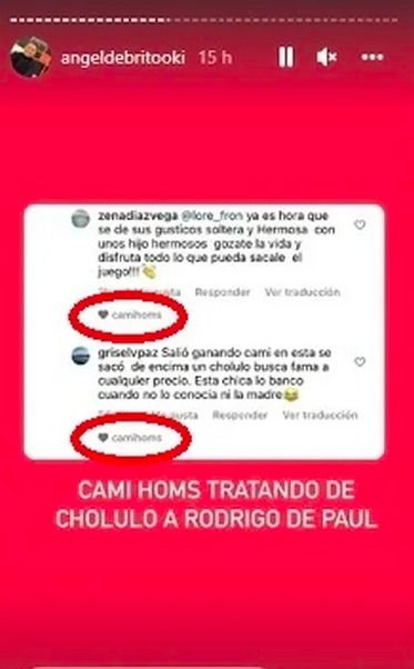 El encargado de deschavar a la modelo fue Ángel de Brito, quien encontró diversos guiños de Camila contra su flamante ex en dos mensajes donde lo tildaban de "cholulo".