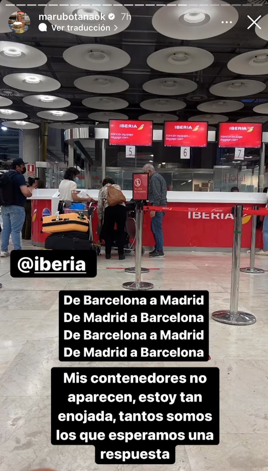 "De Barcelona a Madrid. De Madrid a Barcelona. Mis contenedores no aparecen, estoy tan enojada. Tantos somos los que esperamos una respuesta. Gracias a esta amorosa aparecieron los contenedores", escribió Maru Botana en su cuenta de Instagram.