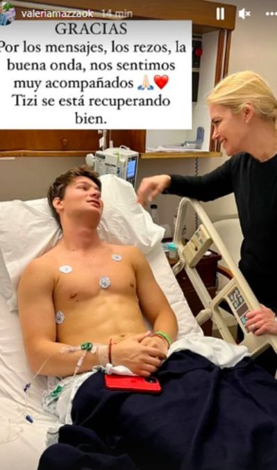 Por su parte, la modelo publicó una fotografía junto a su hijo desde el interior de la habitación del nosocomio. "Gracias. Por los mensajes, los rezos, la buena onda. Nos sentimos muy acompañados. Tizi se está recuperando bien", escribió Valeria junto a un emoji de corazón y otro de las manos juntas en forma de rezo.