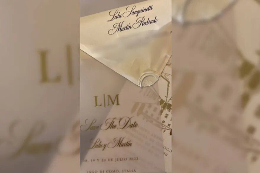En la tarjeta, se puede leer en tonos dorados “Love the date”. Los invitados de Martín Redrado y Lulú Sanguinetti ya están recibiendo las tarjetas, y por el momento no trascendió cómo será el viaje de las personas elegidas hacia Europa para el festejo.