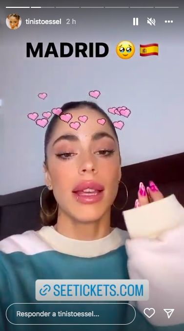 Por si quedaba alguna duda de que la mano es la de Tini, la artista subió en simultáneo unos videos a su red social, anunciando su próximo shows en Madrid, y sus particulares uñas esculpidas fueron la clara evidencia que se trataba de ella.