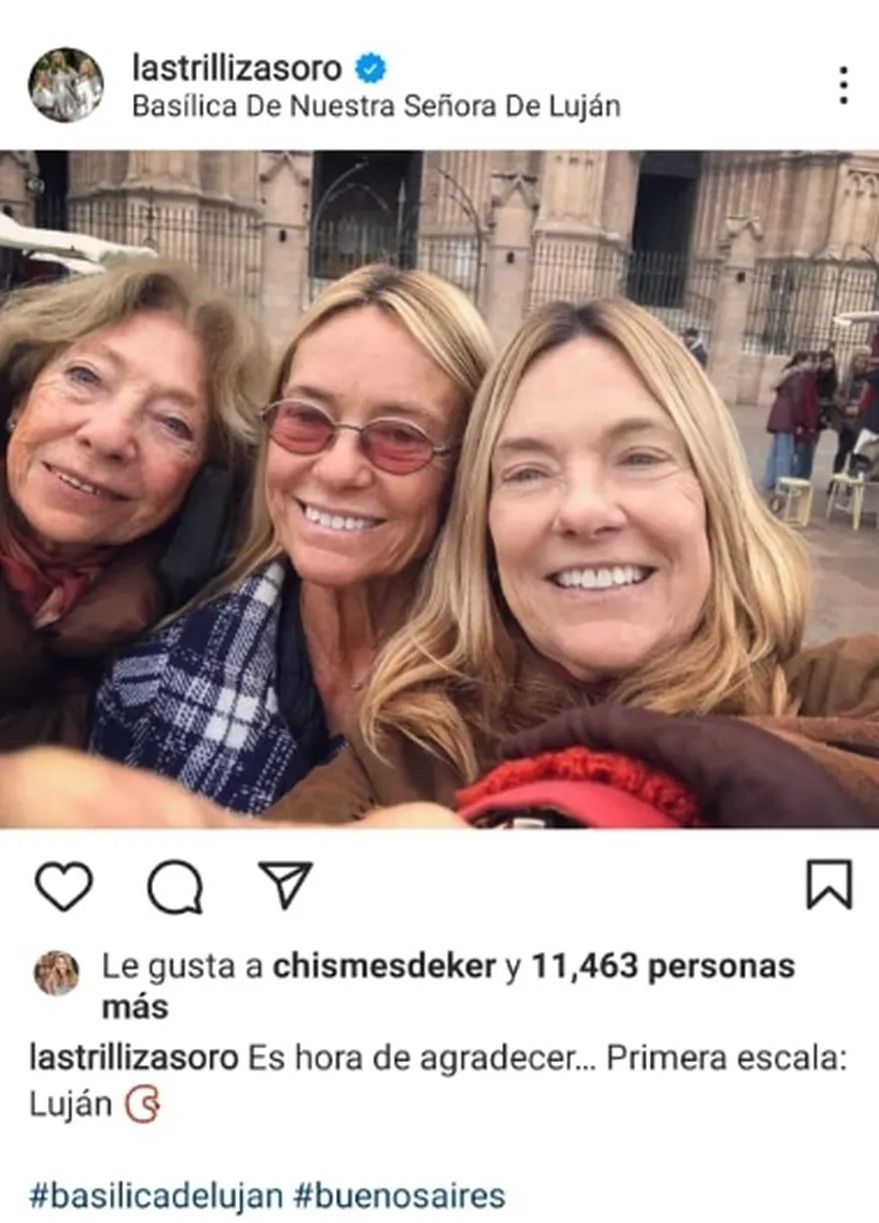 Ahora bien, lo primero que hicieron Las Trillizas de Oro al llegar a la Argentina fue agradecerle a todos por el apoyo y decidieron visitar Luján desde donde compartieron fotos y escribieron: "Es hora de agradecer. Primera escala: Luján. Hola gente linda. Bueno, ahora sí. A agradecer a la virgencita".