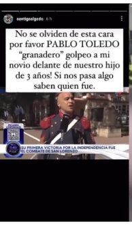 Motorizado en el deseo de terminar con todo este escenario de amenazas, de violencia, el heredero de Salgado le puso nombre y apellido a los supuestos agresores: “Esta fue la emboscada en la puerta de nuestro ph. Pablo Néstor Toledo, el rango más bajo en el ejército, es granadero y es esto. Y su mujer… bueno, intento de mujer. Si algún día me pasa algo a mí o a mi familia, recuerden estas caras por favor”.