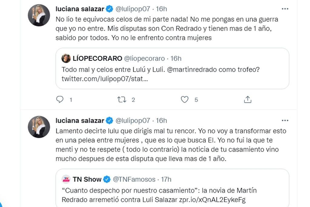Luciana Salazar se encuentra en el ojo de la tormenta. Y es que, hace algunos días Martín Redrado se casó con Lulú Sanguinetti y todas las miradas apuntaron a ella. Cabe recordar que la modelo mantiene un fuerte enfrentamiento legal y mediático con el empresario.