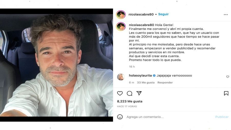 Desde hace un tiempo, una persona acumuló más de 200.000 seguidores haciéndose pasar por Nicolás Cabré, y el artista decidió abrir una cuenta oficial en Instagram para aclarar la situación, ya que el usuario o usuaria en cuestión empezó a promocionar productos y servicios en nombre del actor.