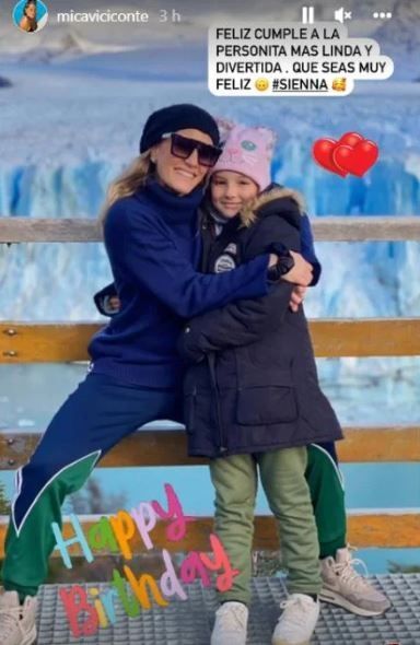“Feliz cumple a la personita más linda y divertida. Que seas muy feliz”, expresó la mamá de Luca en sus historias de Instagram, al subir una postal en la que se la ve abrazando a la niña, con el glaciar Perito Moreno de fondo y muchos corazones rojos.