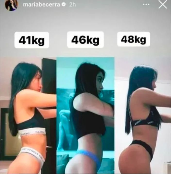 En este contexto, la joven mostró en sus redes sociales el cambio físico que tuvo en los últimos tiempos, cuando pasó de pesar 41 kilos a 48, un número impensado para ella.