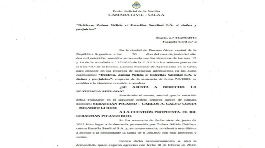 Además, el fallo expresa que Lobato deberá ser compensada por parte de Crónica TV con la suma de $300.000 más intereses y costas.
