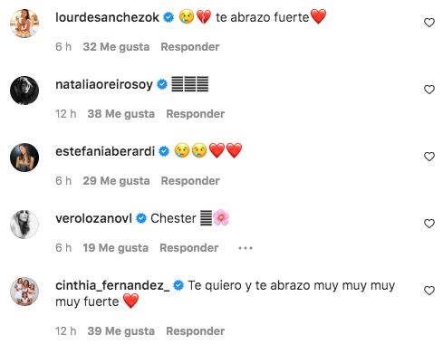 Como era de esperarse, empezaron a llegar mensajes de apoyo de diversos famosos: Natalia Oreiro, Verónica Lozano, Lourdes Sánchez, Estefanía Berardi y Cinthia Fernández fueron algunos que le dejaron su saludo y su acompañamiento.