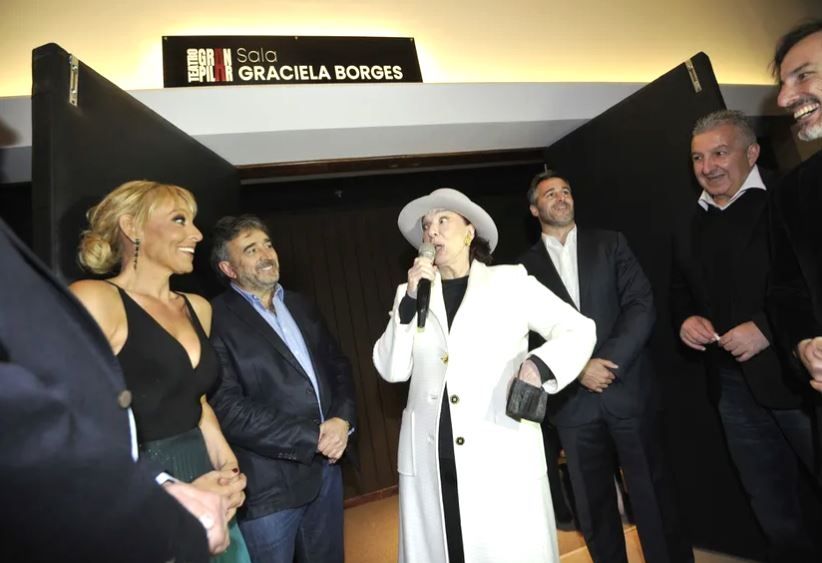 Graciela fue distinguida como la madrina de la sala teatral, que reabrió sus puertas tras veinte años cerrada. Acompañada de su hijo Juan Cruz Bordeu y de su amiga Luisina Brando, la Borges disfrutó del evento, que contó con la presentación del humorista Hugo Varela y con un show musical de parte de una banda tributo a Queen, Reina Madre.