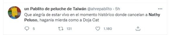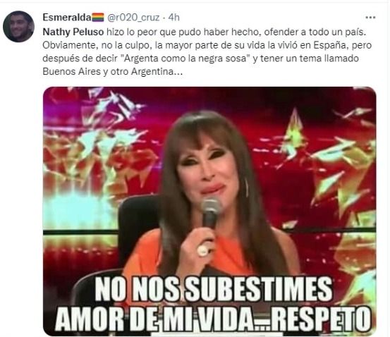 En Twitter, sus fanáticos la destrozaron: "Nathy Peluso hizo lo peor que pudo haber hecho, ofender a todo un país. Obviamente, no la culpo, la mayor parte de su vida la vivió en España, pero después de decir "Argenta como la negra sosa" y tener un tema llamado Buenos Aires y otro Argentina".