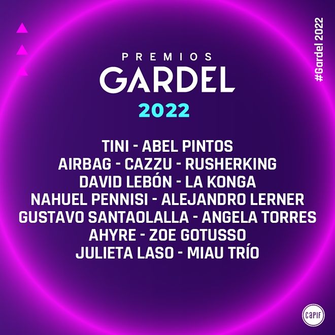 CAPIF, entidad que organiza anualmente los Premios Gardel, anuncia el listado de artistas que protagonizarán los ocho musicales durante la ceremonia de entrega de los galardones del próximo martes 23 de agosto, desde el escenario del Movistar Arena.