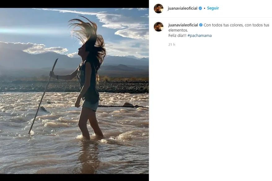 En esta oportunidad, Juana Viale le rindió tributo a la Madre Tierra en el Día de la Pachamama. Con sus pies en el agua y su cabellera al viento, la artista escribió en el epígrafe de la publicación: “Con todos tus colores, con todos tus elementos. Feliz día”.