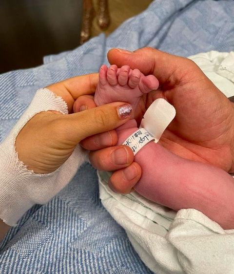 "Te amamos profundamente", agregó en el posteo que también muestra el acompañamiento del cantante en la sala de parto, el recibimiento de Cielo y la felicidad de la actriz amamantando por primera vez a su beba.