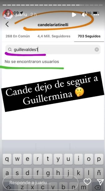 Fue la periodista Juariu quien, al realizar una revisión de los seguidores de ambas mujeres descubrió que ya no se seguían entre ellas. "Cande dejó de seguir a Guillermina", reveló la panelista especializada en las redes sociales de los famosos.