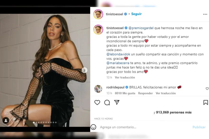 Las palabras de Tini tuvieron lugar en la previa de la entrega de los Premios Gardel, donde la cantante recibió una importante distinción en el rubro Canción del año, y no incluyó en su discurso de agradecimiento a De Paul.