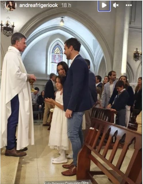 "Feliz primera comunión, Olita", le escribió Frigerio a una instantánea que capturó del momento en que el clérigo le hablaba a la niña, parada al lado de sus padres. De esta manera, la actriz dejó en claro todo lo que late en su interior por su nietita.