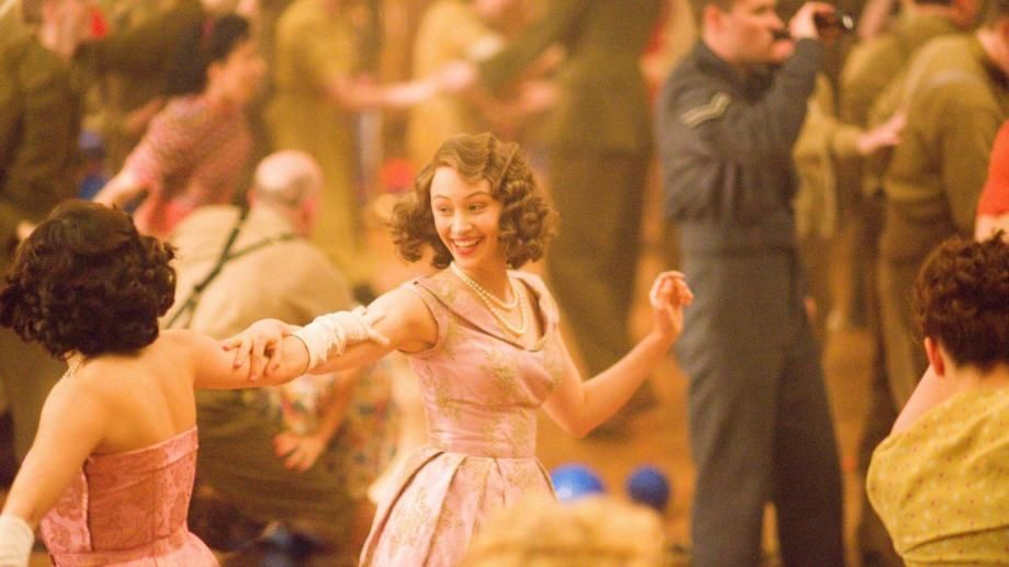Sarah Gadon interpretó a la reina en la comedia romántica “Un escape real” (2015). Es un respiro entre tantas propuestas más estructuradas, muestra a la monarca, junto a la princesa Margarita, celebrando el V-E Day en 1945, cuando eran tan solo unas adolescentes.