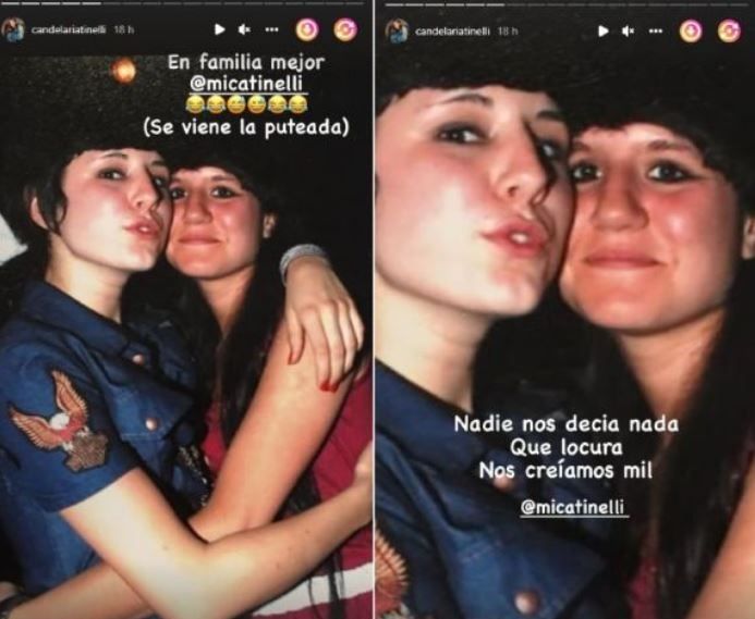 Pero más tarde llegaría un contenido mucho más jugoso: unas fotos con su hermana de la misma época. "En familia mejor, Mica Tinelli", escribió y, conociendo a Mica, adelantó, entre paréntesis: "Se viene la puteada...". Y luego sumó: "Nadie nos decía nada. ¡Qué locura, nos creíamos mil!".